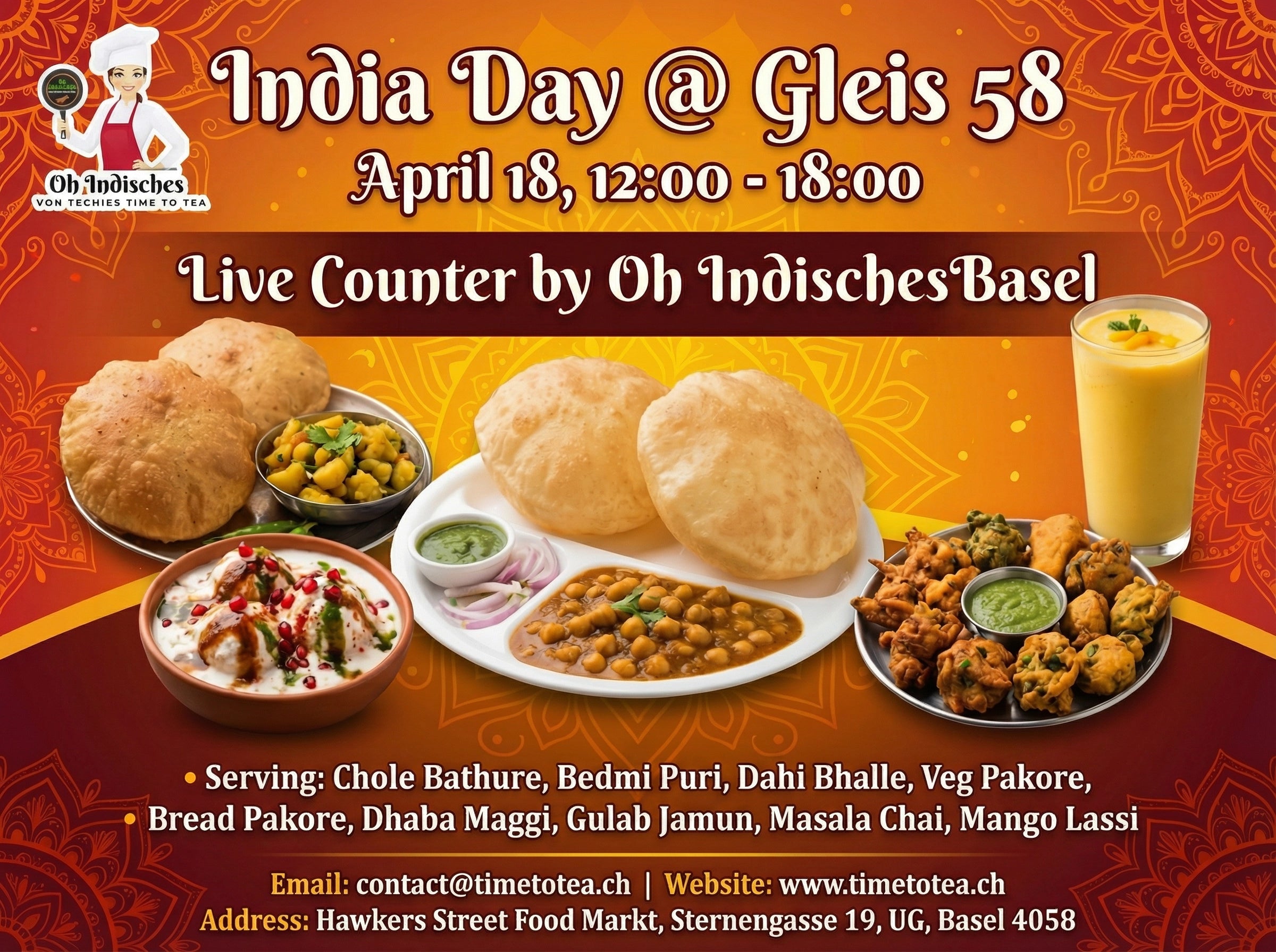 Visit us on April 18th in our Live street food counter at India Day Event in Gleis 58 Basel